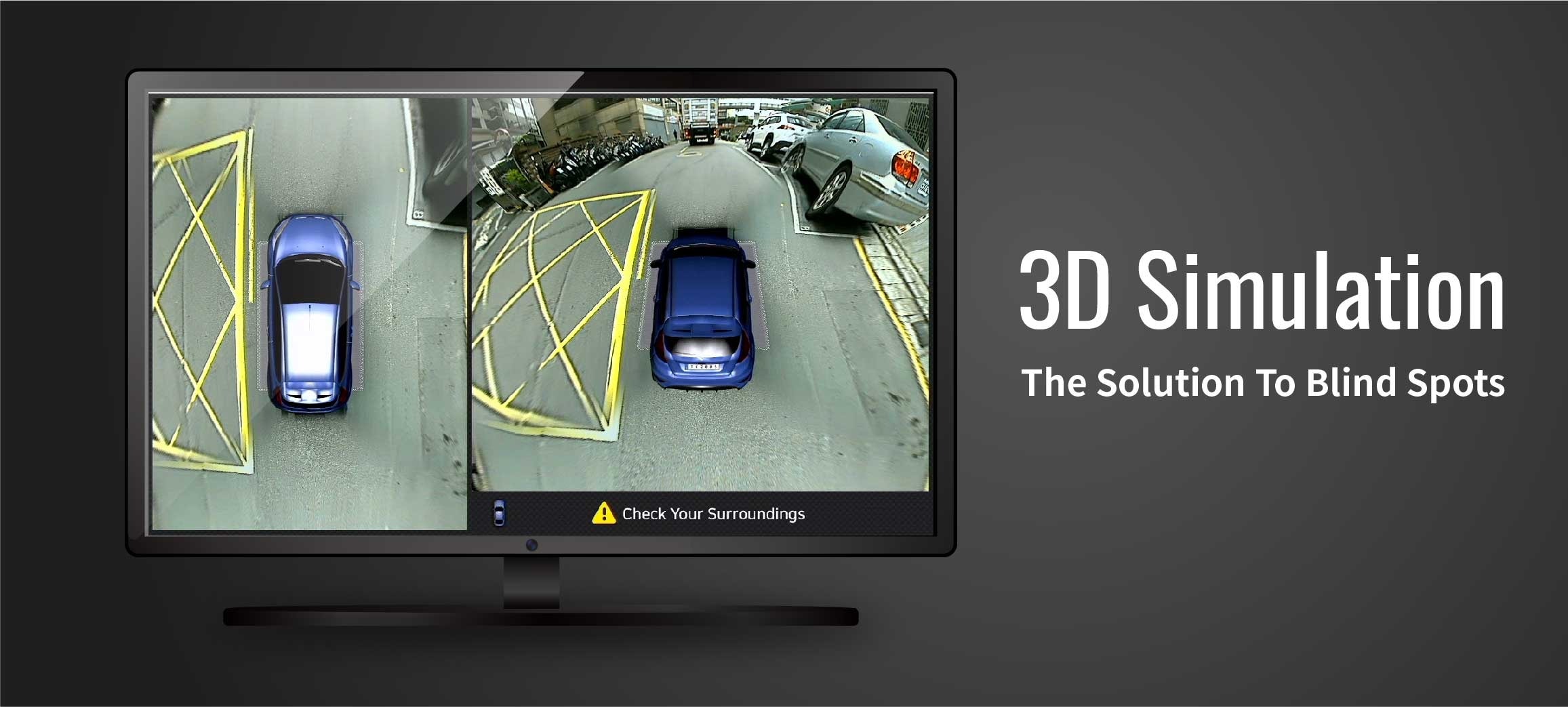 Use the 3D simulation of real car to allow drivers easy to grasp the direction and the distance from surrounding objects.